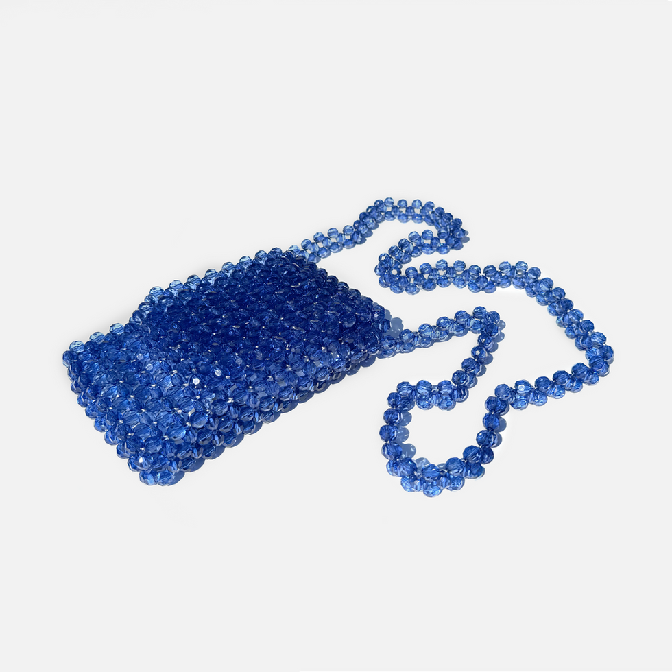 Her tiny bag swallows only the essentials— phone, keys and a Crumpled club flyer.